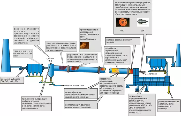 Разработка и внедрение технологии обжига сырьевой смеси из пыли электрофильтров, что позволило обеспечить экономию топлива, огнеупоров, природного сырья, повысить выпуск и качество цемента.