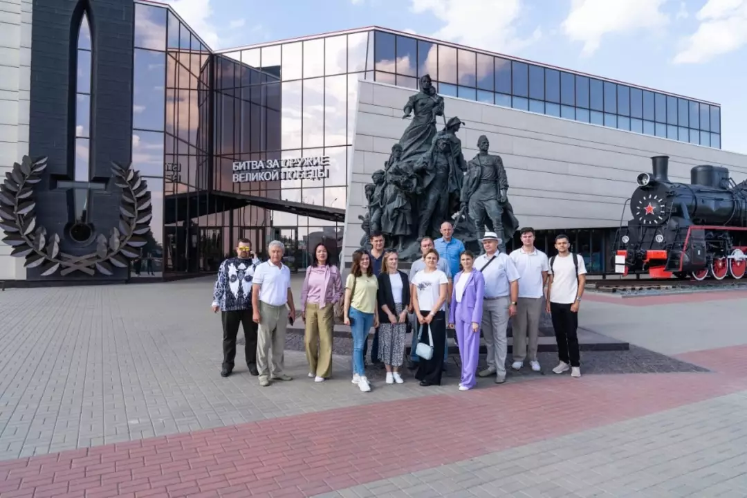 Затем сотрудники университета посетили Звонницу – главный памятник музея-заповедника «Прохоровское поле» – и ознакомились со скульптурами, посвящёнными героям Курской битвы в Парке Победы. Завершилась программа посещением всех музеев комплекса в посёлке Прохоровка.