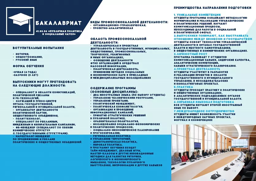Студенты программы осваивают методологию формирования и реализации управленческих и политических решений. Изучают коммуникационные процессы, необходимые для работы в социальной и политической сферах.