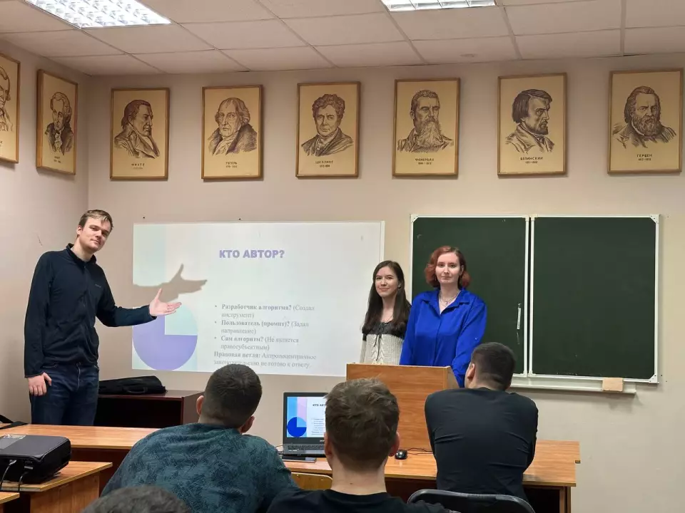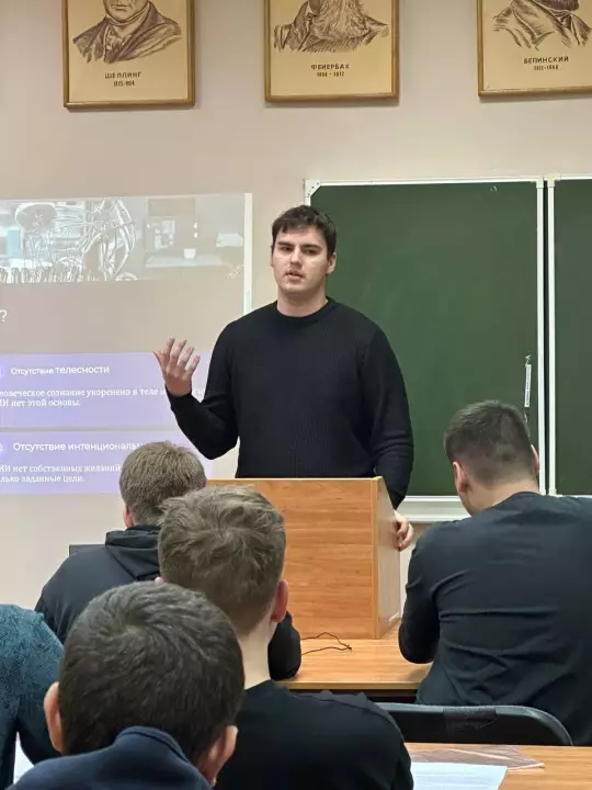 Участники заседания представили доклады на следующие темы: «Искусственный интеллект и философия разума», Тимошенко К.Д., Осколков Н.А., ВТ-242, (научный руководитель, доц. Бережная И.Н.), «Что такое цифровое общество», Сов Драмане, ПП-231, (научный руководитель, доц. Бережная И.Н.), «Цифровая идентичность и алгоритмическая справедливость: кто мы в мире, где нас оценивают по данным?», Голосная Д.И, Ляшов А.И, Зиновьев Д.А, ВТ-242, (научный руководитель, доц. Бережная И.Н.), «Цифровые двойники и размывание границ человеческой идентичности», Маширов В.В., Мухаметшин А.Р, ПИ-241, ( научный руководитель, доц. Бережная И.Н.), «Этика автономных систем: кто несет ответственность за решения, принятые искусственным интеллектом в цифровом обществе?», Прокопов А.В., ПВ-242, (научный руководитель, доц. Бережная И.Н.), «Цифровые привычки: что помогает, а что только тратит наше время?», Буянов К.А, Статинов А.И, Беляев Е.Д., ИТ-242, (научный руководитель, доц. Бережная И.Н.), «Цифровизация и свобода личности: баланс между удобством и зависимостью», Маслова А.Д., ПВ-241, (научный руководитель, доц. Бережная И.Н.), «Проблема использования ИИ в творческих профессиях», Новосельцев В. Д., Кирюхина А. А., Чухлеб Р. Е., Дрючкова А. В., ИТ-241, (научный руководитель, доц. Бережная И.Н.), «Цифровая трансформация в политической сфере», Иванченко Д.И., ПП-231, (научный руководитель, доц. Бережная И.Н.), «Постгуманизм и цифровая трансформация», Горофатский Д.А, Мерзликин Е.И., ПВ-242, (научный руководитель, доц. Бережная И.Н.).