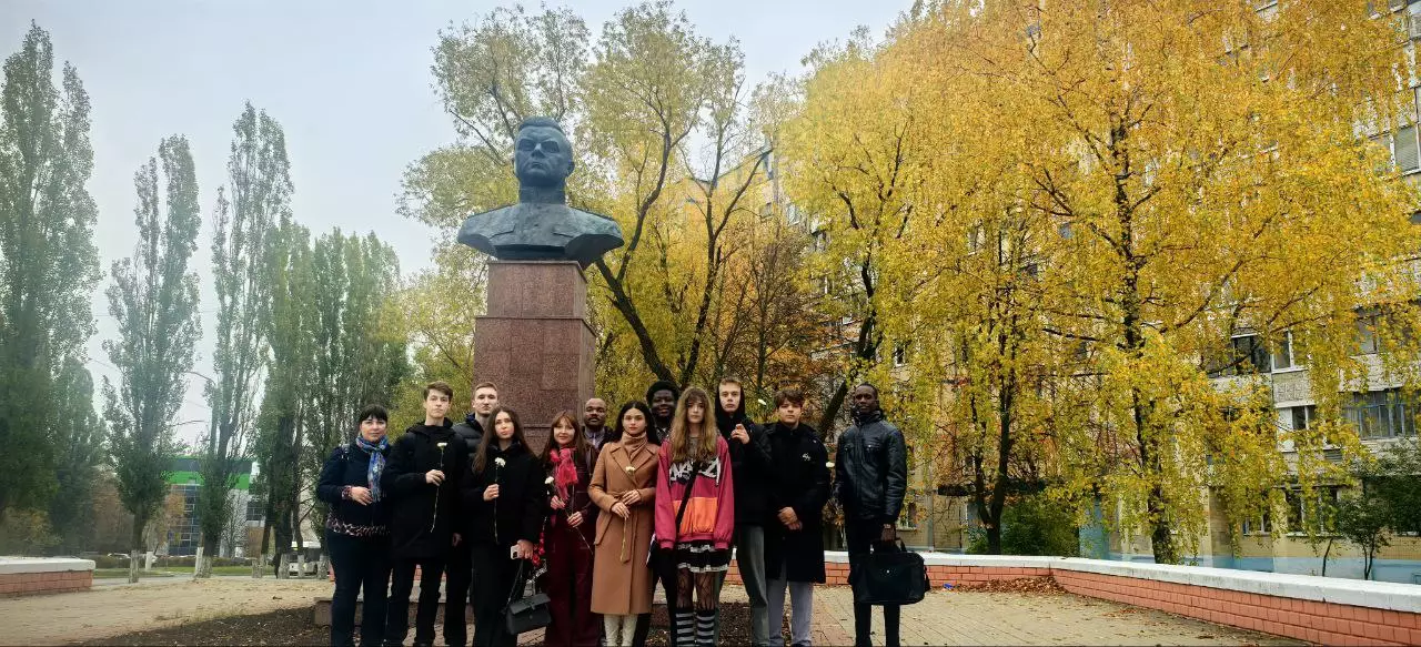 Участники тематической прогулки почтили память героя минутой молчания и возложили цветы к подножью памятника. Мероприятие способствовало сближению студентов разных возрастов и культур.