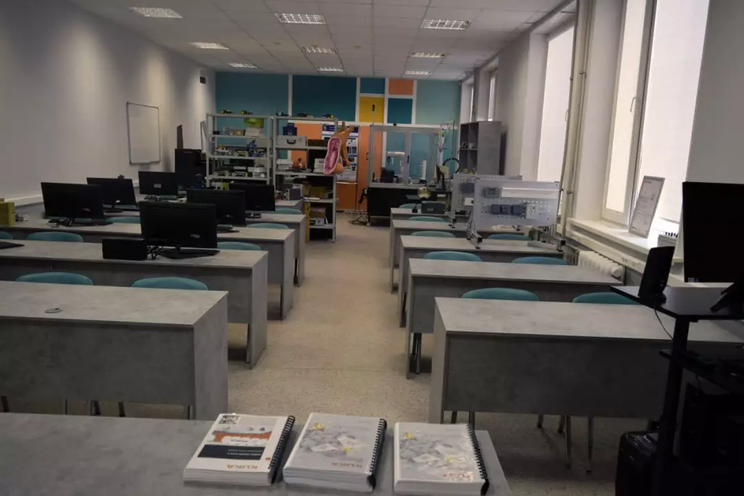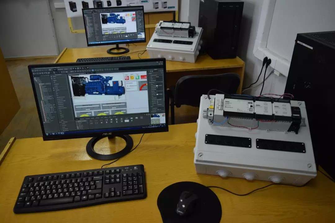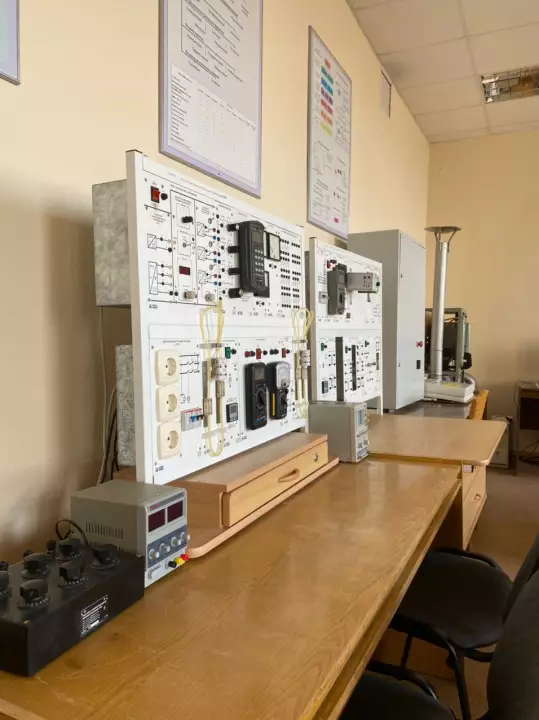 Оборудование: цифровой осциллограф смешанных сигналов RIGOL DS1042CD; паяльные станции Element 862D++ и Lukey 852D; модуль ввода-вывода NI USB‑6009; измеритель-регулятор Параграф PL20; регулирующий шаровой клапан с электроприводом (2 шт); измерительные преобразователи температуры, уровня, давления и расхода; 3-х фазные двигатели и устройства пуска; промышленный конвейер и промышленный робот ABB IRB 140; электромеханические усилители и блоки коммутации; сельсины; МЭО; индуктивные и потенциометрические датчики; двигатели постоянного тока; цифровые мультиметры; шкафы для монтажа автоматики; интерактивная доска и проекционное оборудование, интеллектуальное реле.