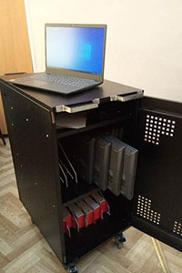 Для организации проведения курсов отделом информационно-технического обеспечения образования (ИТОО) управления информатизации и коммуникаций был использован новый технологический комплекс – "Мобильный компьютерный класс".