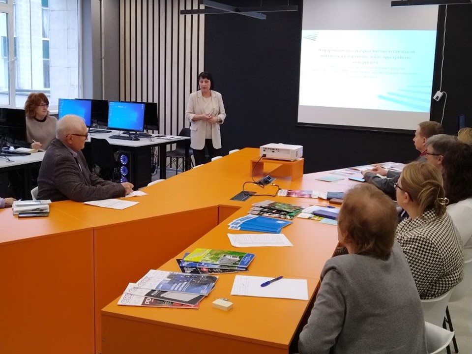 Сегодня в лаборатории инженерного проектирования состоялся обучающий семинар для преподавателей института энергетики и электроники. В ходе занятия директор НТБ Маргарита Шафиевна Григорьева рассказала об электронных ресурсах библиотеки, их содержании, сервисах и возможностях использования в образовательном процессе и научных исследованиях.