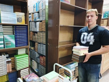 Первокурсники химико-технологического института продолжают трудовую практику и делают свой вклад в благоустройство университета! В эти дни они помогают подготавливать библиотеку к новому учебному году.