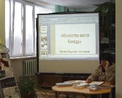 28 ноября 2014г в читальном зале гуманитарной литературы состоялось очередное занятие «Школы делового общения». Студенты гр. ЭА-15 просмотрели видеоролик на тему : «Искусство вести беседу». Затем им были предложены тесты «Умение общаться в любой среде». Будущие энергетики справились с заданиями на «отлично».