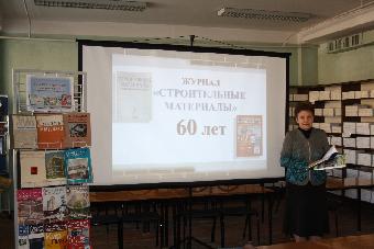 8 декабря в читальном зале периодических изданий НТБ состоялся научно-просветительский час «60 лет с отраслью», посвященный юбилею журнала «Строительные материалы».