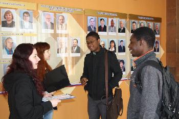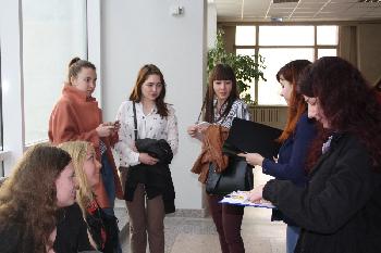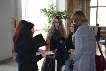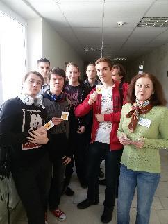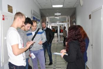 Одновременно во всех учебных корпусах университета студентам был задан вопрос: «Знаете ли Вы, где находится библиотека?». К всеобщей радости 99% студентов ответили положительно и получили смайлик с режимом работы абонементов и читальных залов. Остальные – флайер с подсказкой, как пройти в библиотеку.