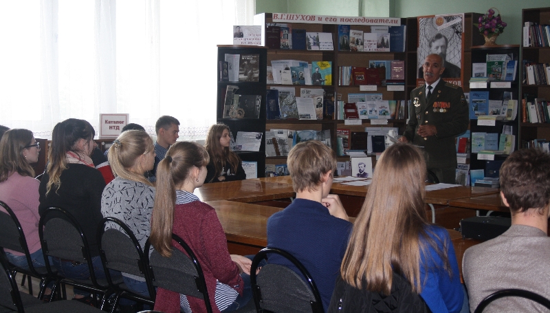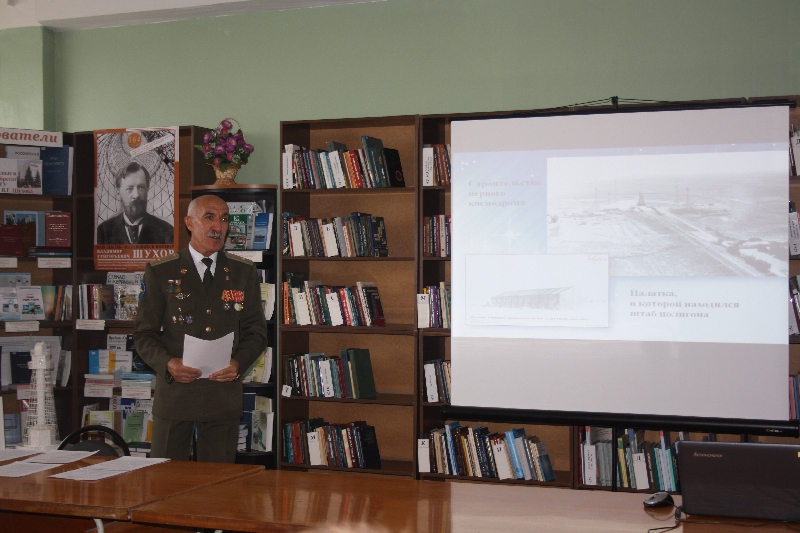 10 октября в интеллектуальной гостиной НТБ состоялась очередная встреча. Она посвящалась 60-летию запуска первого космического спутника «Земли». На встречу с первокурсниками пришёл майор запаса, ветеран Вооруженных сил РФ, ветеран Байконура Л.А. Сапаров. Содержательный, эмоциональный рассказ о строительстве космодрома Байконур, о подготовке и запуске ИСЗ, о конструкторах космической техники и космонавтах захватил внимание присутствующих.