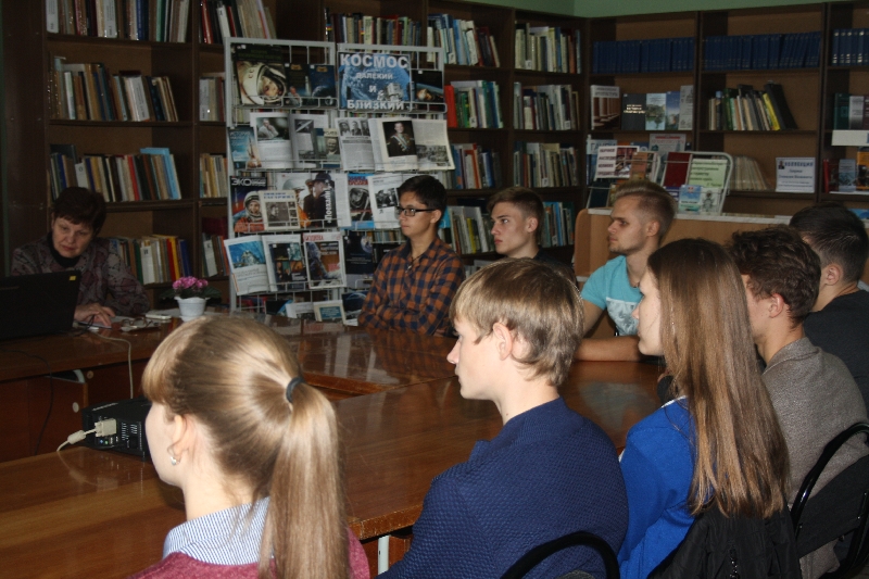 К мероприятию сотрудниками библиотеки была подготовлена презентация «Начало космической эры» и оформлена выставка «Космос далёкий и близкий».