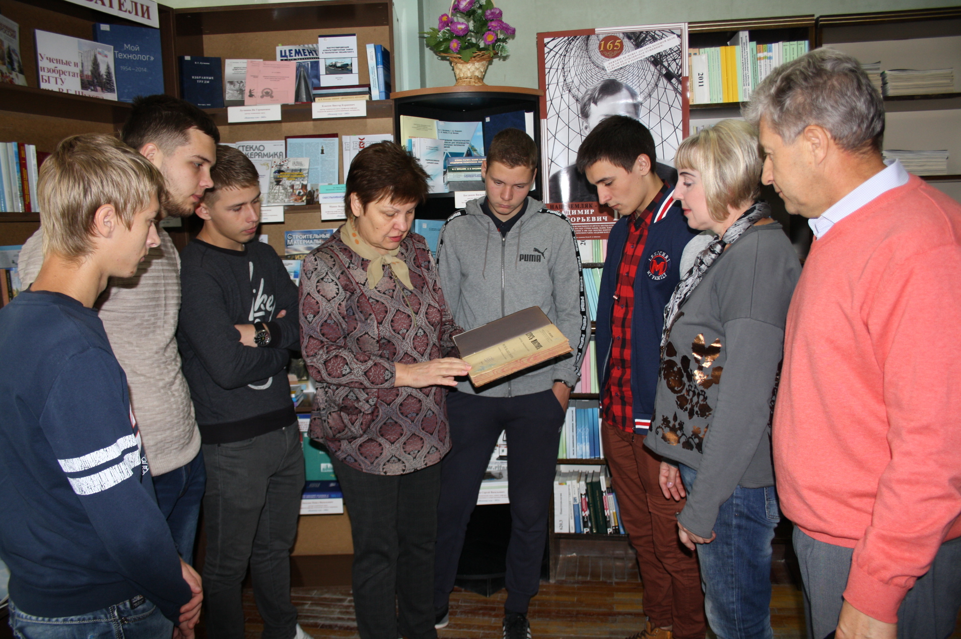 С большим интересом студенты знакомились с литературой, представленной на выставке «В.Г. Шухов и его последователи», рассматривали книги, подаренные Международным Шуховским фондом, фондом «Шуховская башня». Восхищение вызвала книга из коллекции редких и ценных книг библиотеки - «Курс мостов» профессора Г.П. Передерия, подаренная университету и НТБ правнуком В. Г. Шухова Владимиром Федоровичем Шуховым.