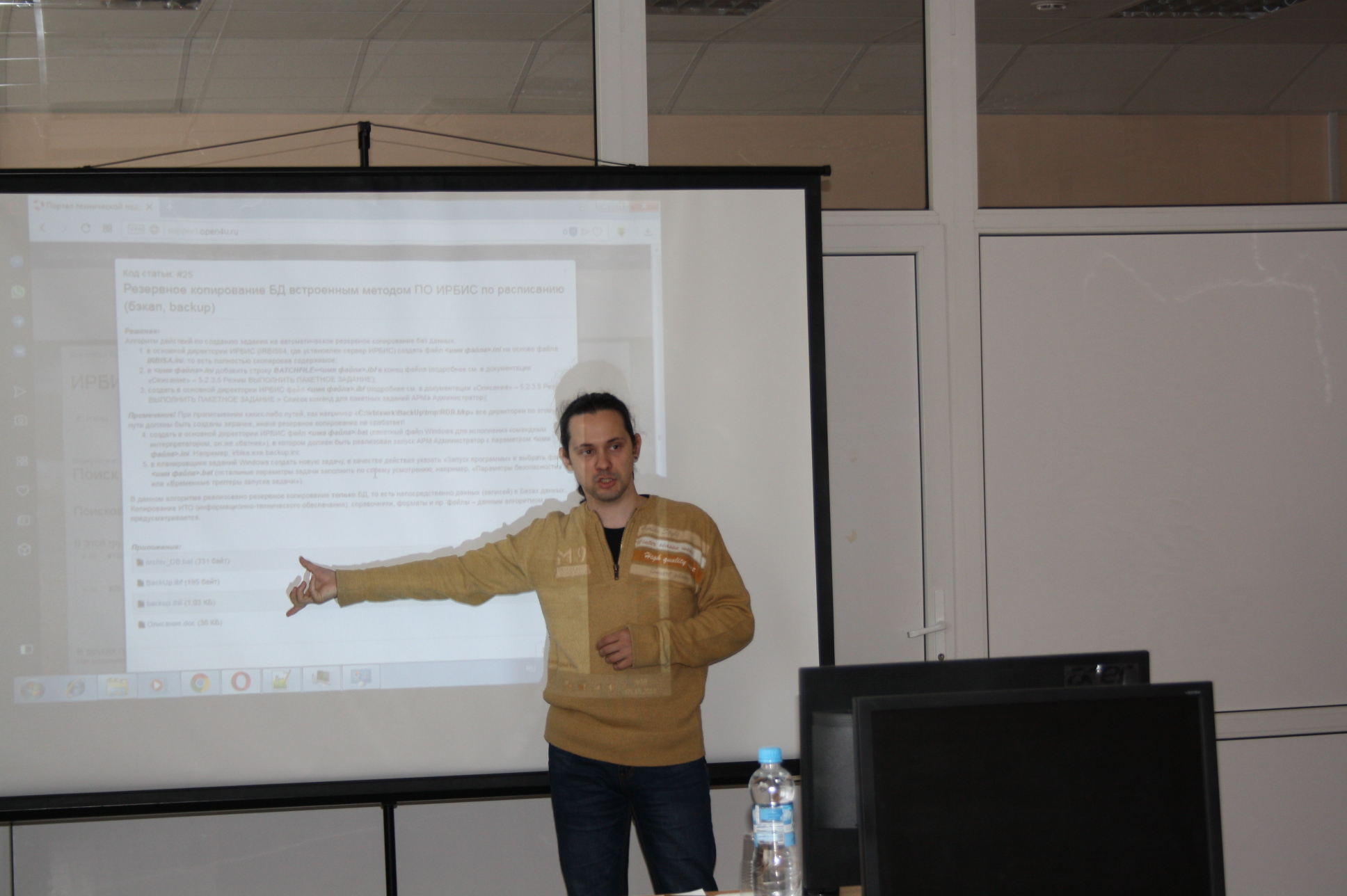 Ведущий программист ООО «ЭйВиДи-систем» Панарин Геннадий Сергеевич подробно остановился на основах администрирования, технологии работы в АРМ Книгообеспеченность и АРМ Комплектатор САБ ИРБИС64.