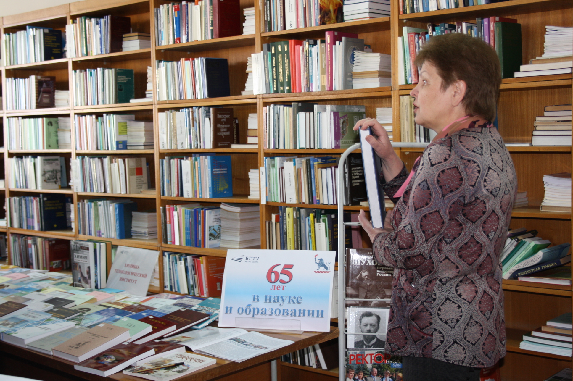 Сегодня в научно-технической библиотеке состоялось открытие выставки-просмотра учебной и научной литературы «65 лет в науке и образовании», посвященной 65-летию образования БГТУ им. В. Г. Шухова. Просмотр включает монографии, учебники, сборники научных трудов, публикации в периодических изданиях ведущих ученых университета.