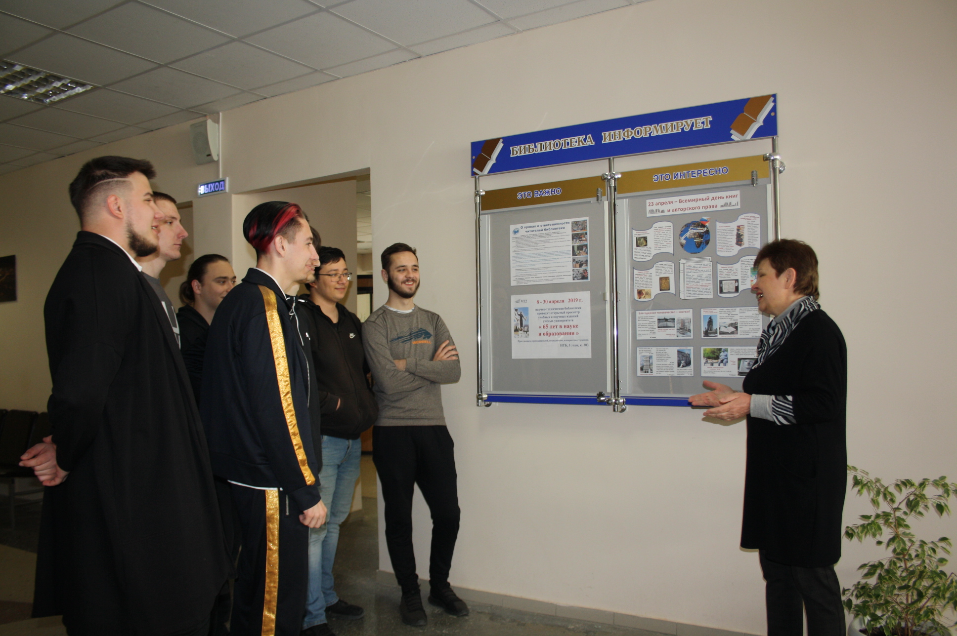 23 апреля в рамках Всемирного дня книг и авторского права библиотека организовала для студентов увлекательную экскурсию «Книжный лабиринт». Стенд «Это интересно» познакомил с историей возникновения праздника, различными книжными рекордами, высказываниями великих людей о книгах.