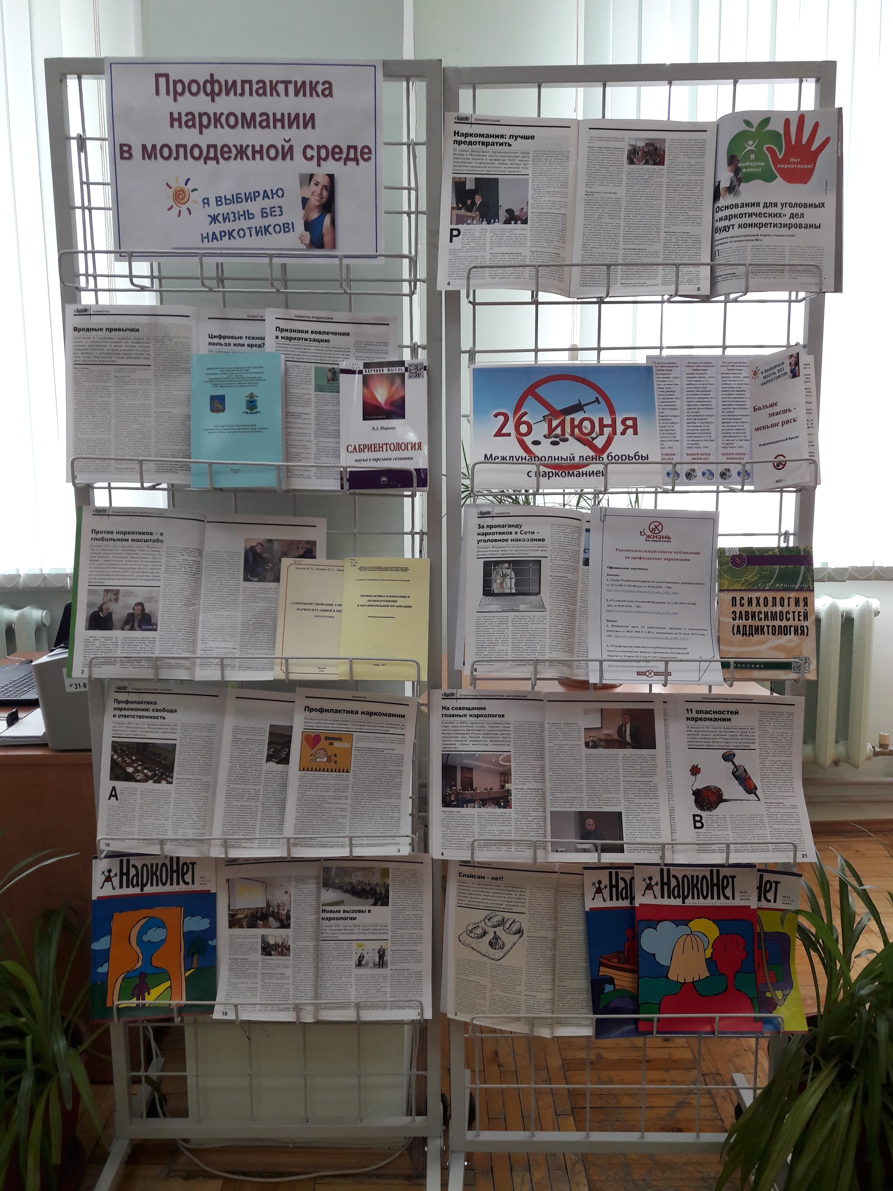 В рамках участия во Всероссийской межведомственной комплексной оперативно-профилактической операции «Дети России – 2021 г.» (с 5 апреля по 24 ноября 2021 г.), направленной на предупреждение распространения наркомании, предлагаем ознакомиться с выставкой «Профилактика наркомании в молодежной среде», где представлены книги из фонда НТБ и актуальные публикации из периодических изданий о факторах, причинах, способах борьбы с употреблением наркотиков (к. 408, БК).