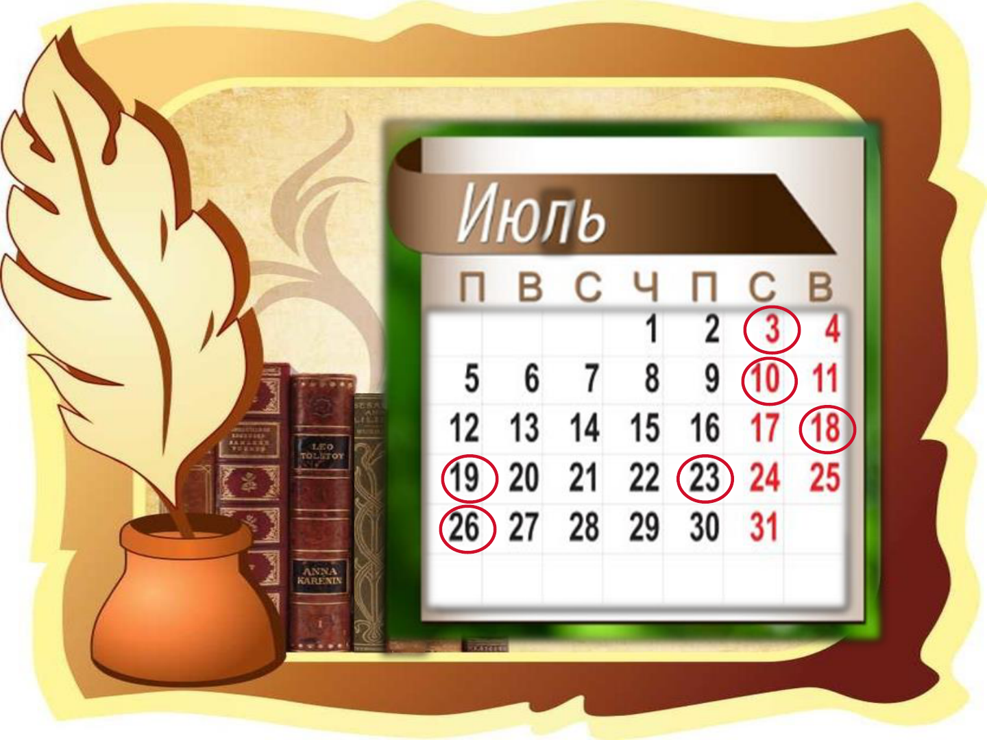 Предлагаем ознакомиться с июльским выпуском литературного альманаха, посвященного юбилейным датам известных русских и зарубежных писателей.