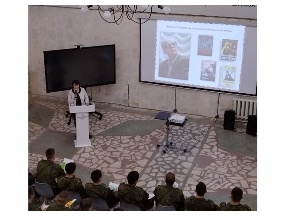 26 мая курсанты Военного учебного центра университета и Губкинского, Северо-Кавказского филиалов приняли участие в мероприятии, посвященном жизни и творчеству Б.Л. Васильева из цикла «Портретная галерея поэтов и писателей, служивших Отечеству».