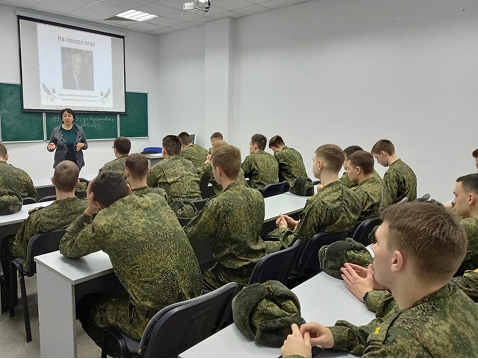 В рамках лектория «Портретная галерея писателей и поэтов, служивших Отечеству» для курсантов военно - учебного центра БГТУ им. В.Г. Шухова сотрудники библиотеки провели литературную беседу о белгородском писателе С.Г. Мильшине. Сергей Геннадьевич в 1987–1989 гг. служил в Афганистане в мотострелковом полку на артиллерийской заставе.